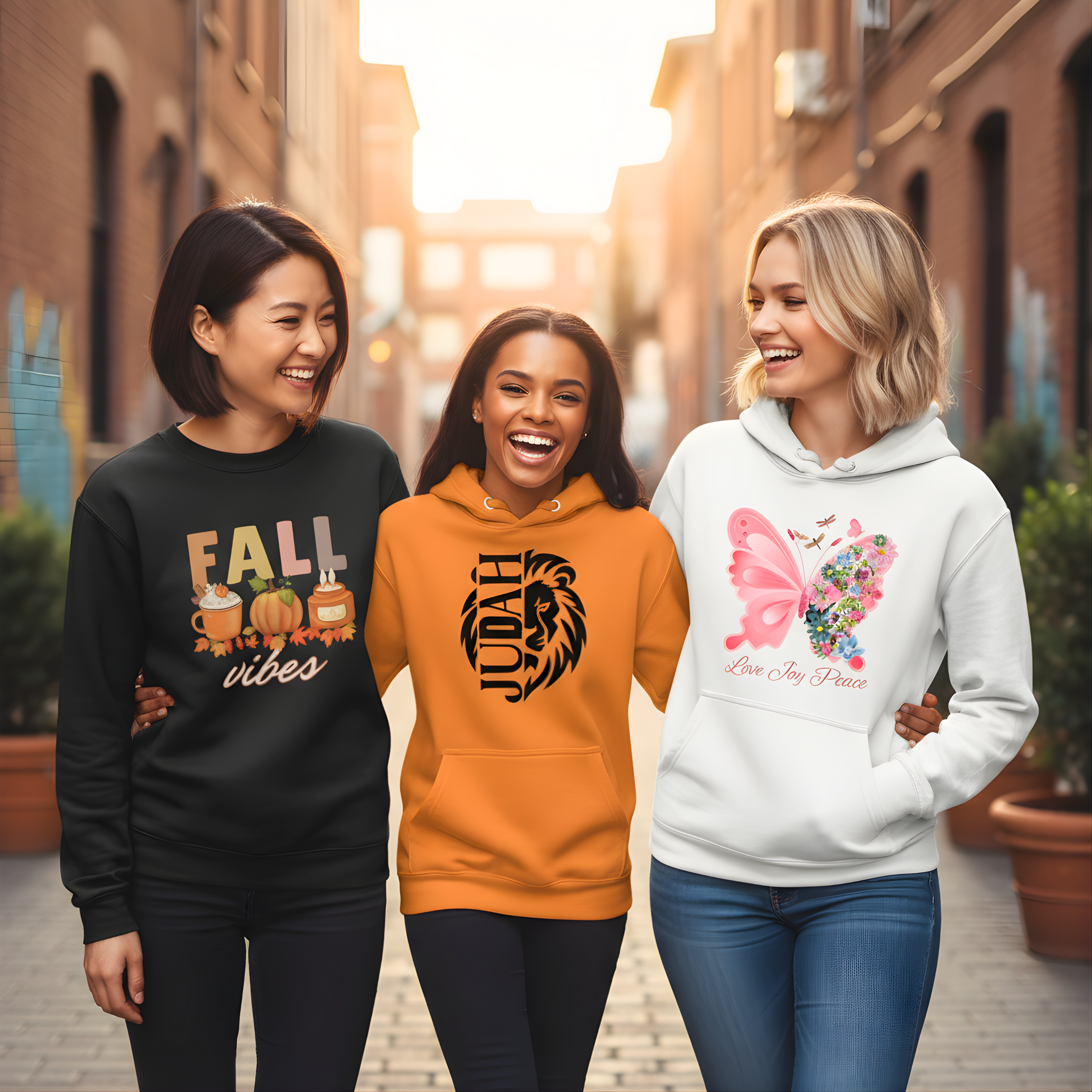 Gracelle Women's Butterfly Flower Hoodie | Love Joy Peace Graphic Cozy Pullover